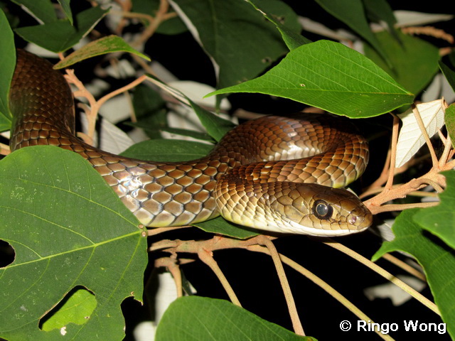 | Behaviour | Diurnal. Often hunts Gunther's frogs (Rana guentheri) in the tall grass around reservoirs, streams and catchwaters. If surprised near water, will usually dive and swimming away with its head up. When caught, will constantly thrash about and twist the body, making it extremely difficult to hold. Will also bite vigorously. Does not become tame in captivity, but accepts food readily. Captive specimens remain nervous, darting about, striking and biting when approached. Commonly sold in snake shops for its gall bladder and meat. |